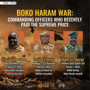 The recent killings of senior Nigerian military officers have shaken the armed forces. Among those reportedly slain in renewed terrorists’ attacks are Lt. Col. Umar Faruq, Lt. Col. S. I. Iliyasu, and Major U. I. Mairiga, alongside numerous soldiers who died defending the territorial integrity of Nigeria.